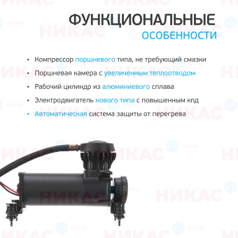 Данный компрессор может быть установлен в подкапотном отсеке для выполнения профессиональных задач: управление пневмосигналом и пневмоподвеской, а также установка пневмоблокировок межосевого дифференциала.