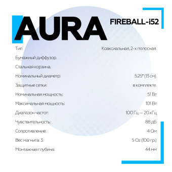 Акустическая система Aura FIREBALL-i52 5,25" (13 см) 2-полосная коаксиальная