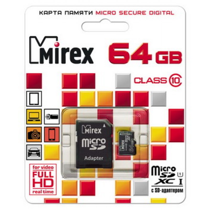 Карта памяти microSDXC с адаптером MIREX 64 GB UHS-I (class 10)